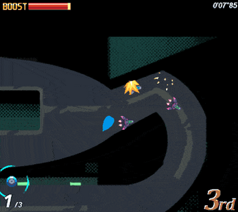 You invented BOOST technology and built a ship sturdy enough to slam into walls at high speeds, and it's time to haphazardly carom your way to victory! Just cross the finish line before your ship falls apart, and you win!